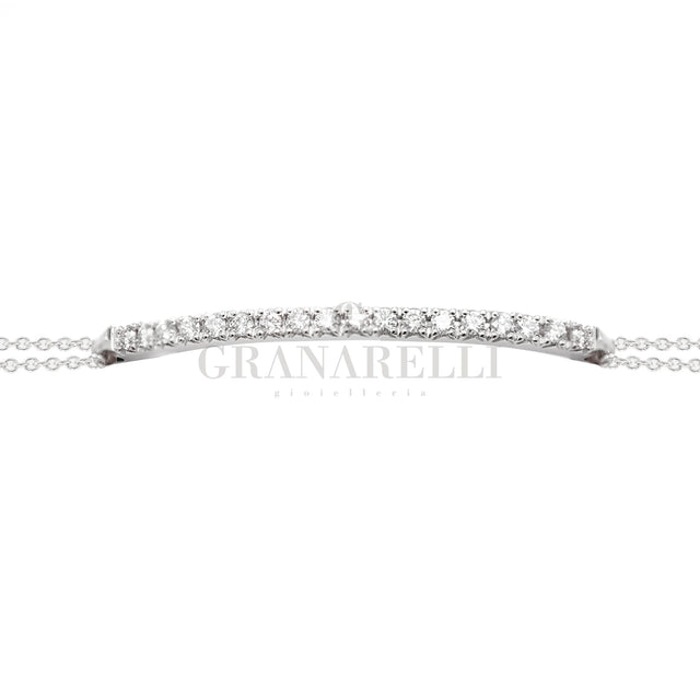 Bracciale barretta in oro bianco 18 carati e diamanti bianchi con catena rolò.
