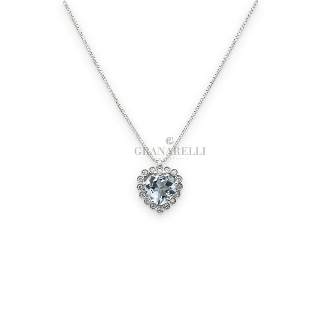 Girocollo Acquamarina cuore 0.70kt con DiamantI in Oro Bianco