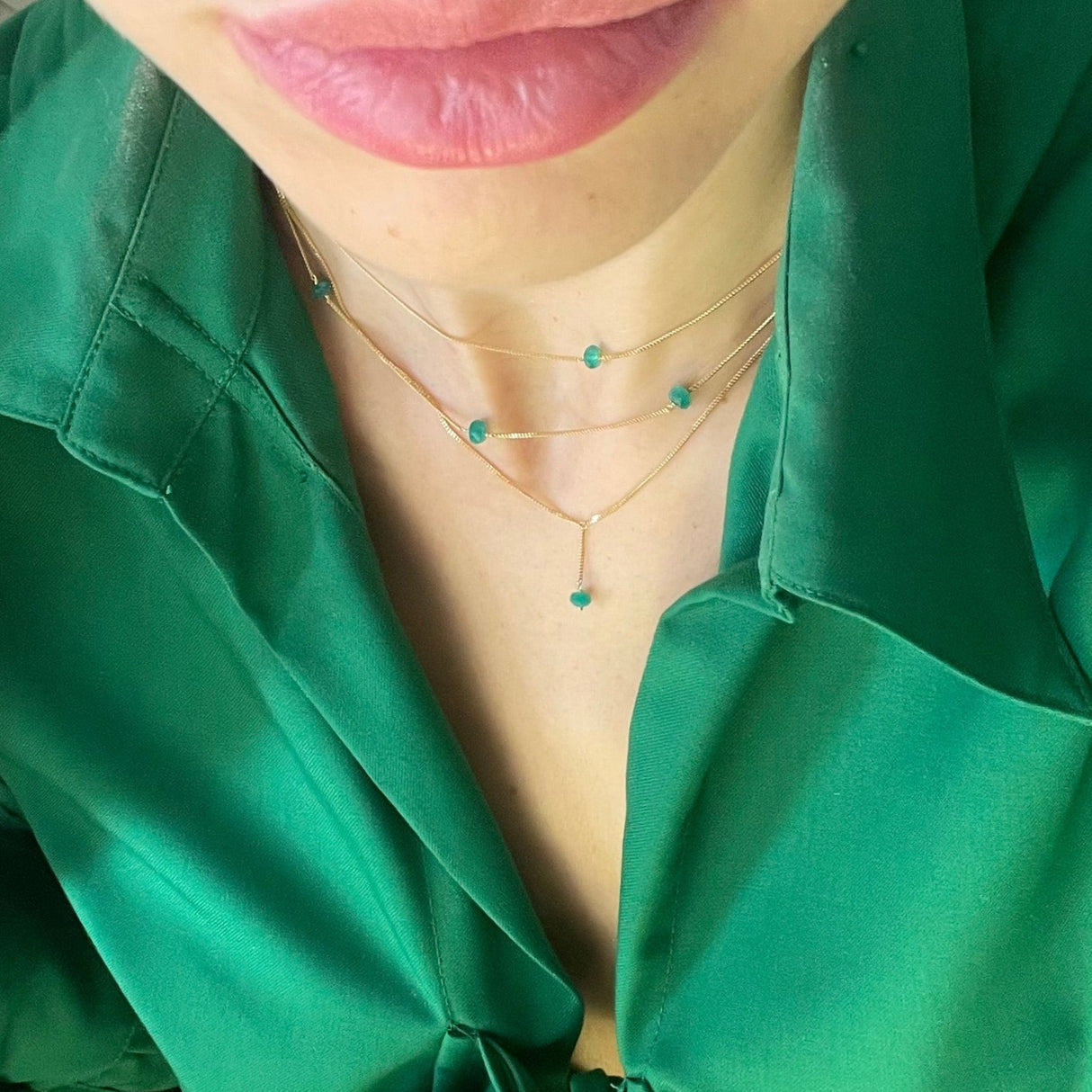 Questa collana con 8 smeraldi incastonati nella catena è così minimal, essenziale ed elegante. Un regalo con il quale sai di non sbagliare.