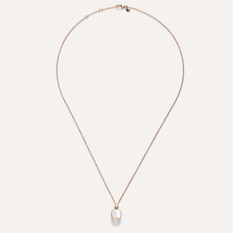 Collana Pendente Nudo in Oro Rosa, Topazio Bianco, Madreperla e Diamanti