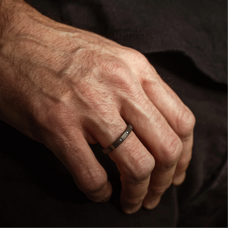 Anello Fedina Uomo Piatta Titanio e Diamante Nero 0.10