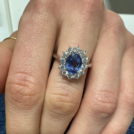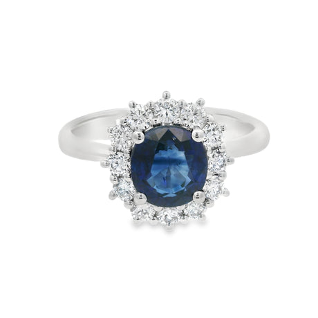 Anello in Oro Bianco con Zaffiro Ovale 1.97kt e Diamanti