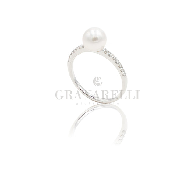 Anello Crivelli in oro bianco 18 kt, con la perla e diamanti bianchi: