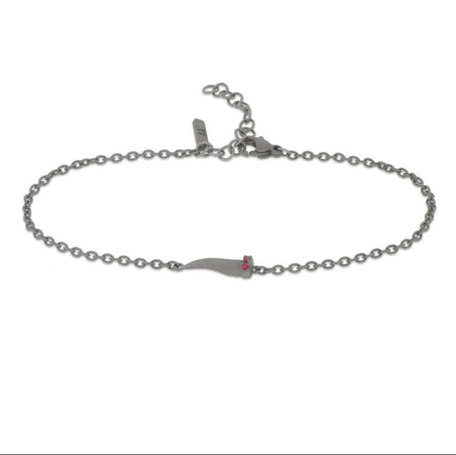 BRACCIALE CON CORNETTO MINI IN TITANIO E RUBINI