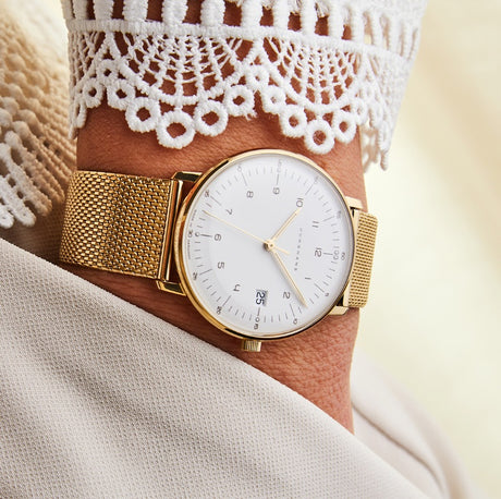 Max Bill Damen Quadrante Bianco Cinturino PVD Oro Giallo