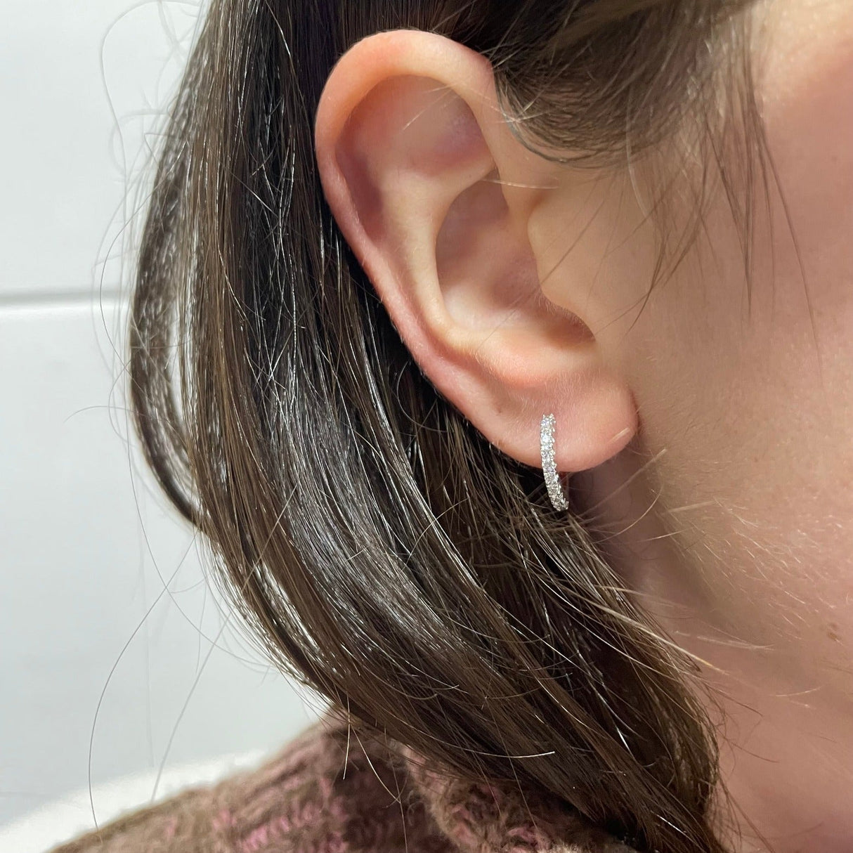 Orecchini cerchietti in oro bianco 18 kt e diamanti bianchi.