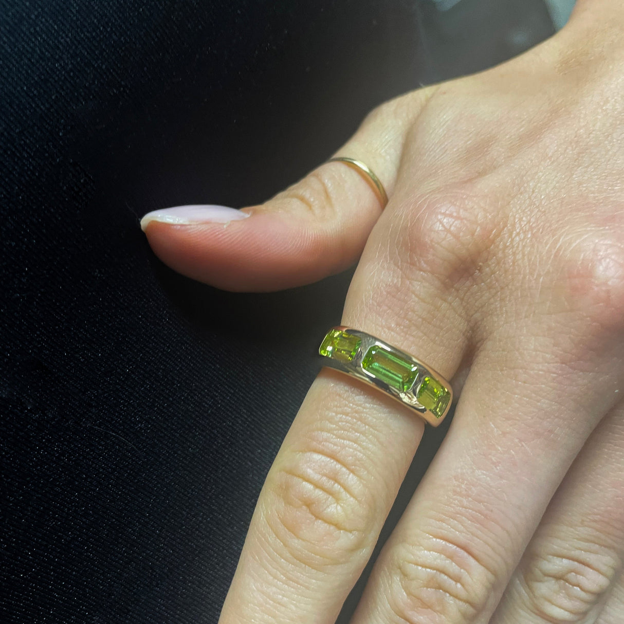 Anello In Oro Rosa 18k Con 3 Peridoti (≈2.3 Ct).