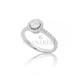 Anello Solitario illusione in oro bianco 18 ct con Diamanti taglio brillante. Creato in laboratorio dai nostri orafi esperti.