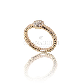 Anello in oro rosa 18 kt dal design attorcigliato con maglia tubolare e diamanti bianchi.
