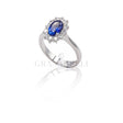 Anello in oro bianco 18 kt con zaffiro taglio ovale e diamanti.