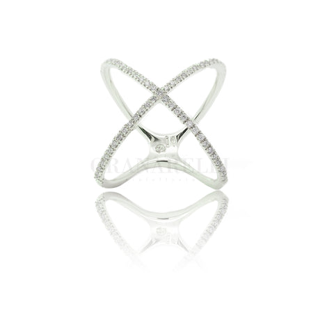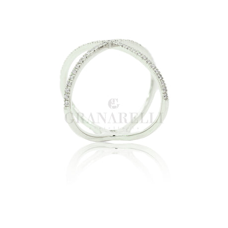 Anello Incrocio con Diamanti Neri in Oro Bianco