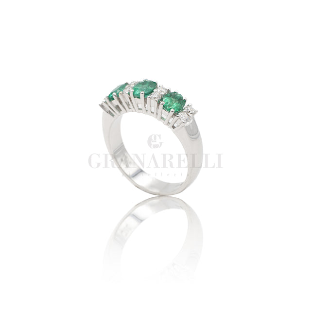 Anello Fedina 3 Smeraldi e Diamanti Bianchi