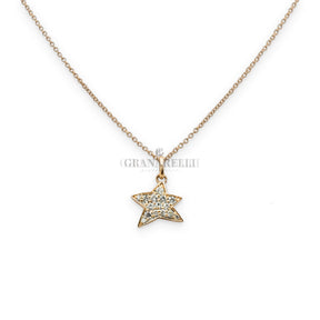 Collana in Oro Rosa 18kt con Ciondolo Stella in pavè di Diamanti Bianchi.