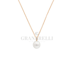 Giocollo Con perla pendente, impreziosita da diamanti, in Oro Rosa 18kt