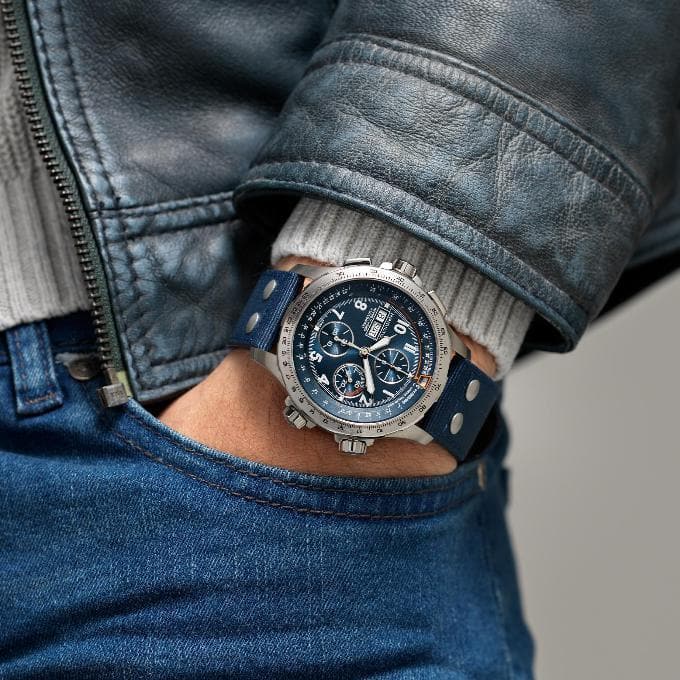 Progettato pensando ai piloti e costruito per le avventure in cielo, il Khaki Aviation X-Wind Automatic Chronograph vola attraverso i venti trasversali in una nuova veste audace, con motivi mimetici e nuove varianti di colore per quadrante, cinturino e cassa. Dotato di lunetta girevole interna e spirale in silicio anti-magnetica, questo modello ad elevate prestazioni mostra uno stile deciso e moderno.