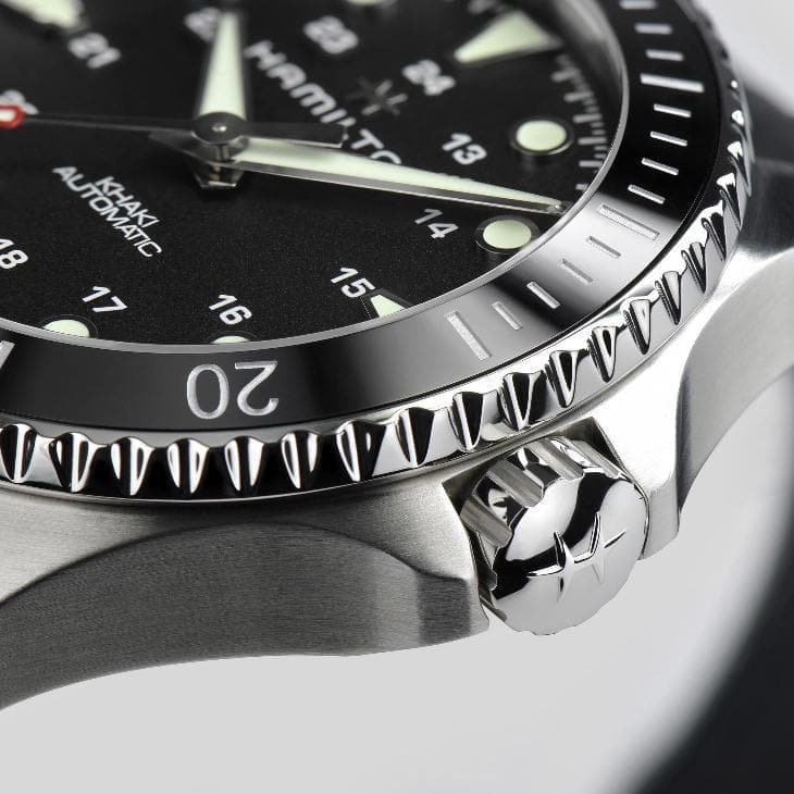 L’eleganza incontra la sportività in questo segnatempo di ispirazione acquatica, perfetto per rilassarsi al mare o esplorare le profondità oceaniche. La lunetta in ceramica con numeri incisi rende il Khaki Navy Scuba Automatic l’orologio perfetto per gli esploratori marini, proteggendolo da elementi corrosivi come sabbia e sale. Grazie alla cassa 43 mm, impermeabilità fino a 30 bar (300 m) e quadrante facilmente leggibile, questo orologio ad elevate prestazioni saprà accompagnarti in tutte le tue avventure, sull’acqua o sotto la superficie.