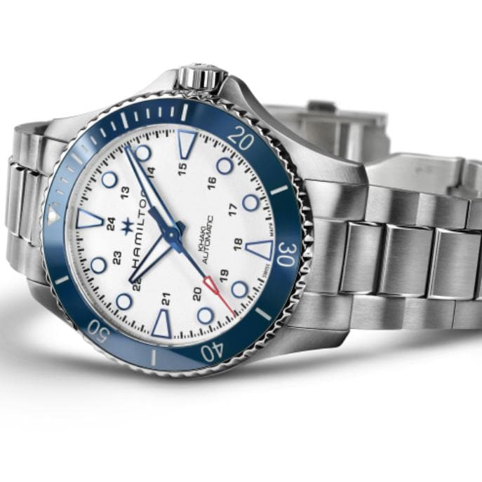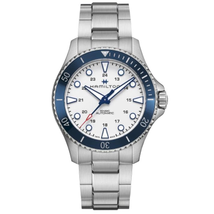Preparati per un’avventurosa estate al mare con questo Khaki Navy Scuba Automatic. Progettato per resistere a elementi corrosivi come sabbia e sale, è corredato da una splendida lunetta in ceramica blu che richiama l’oceano: un vero segnatempo di ispirazione acquatica.