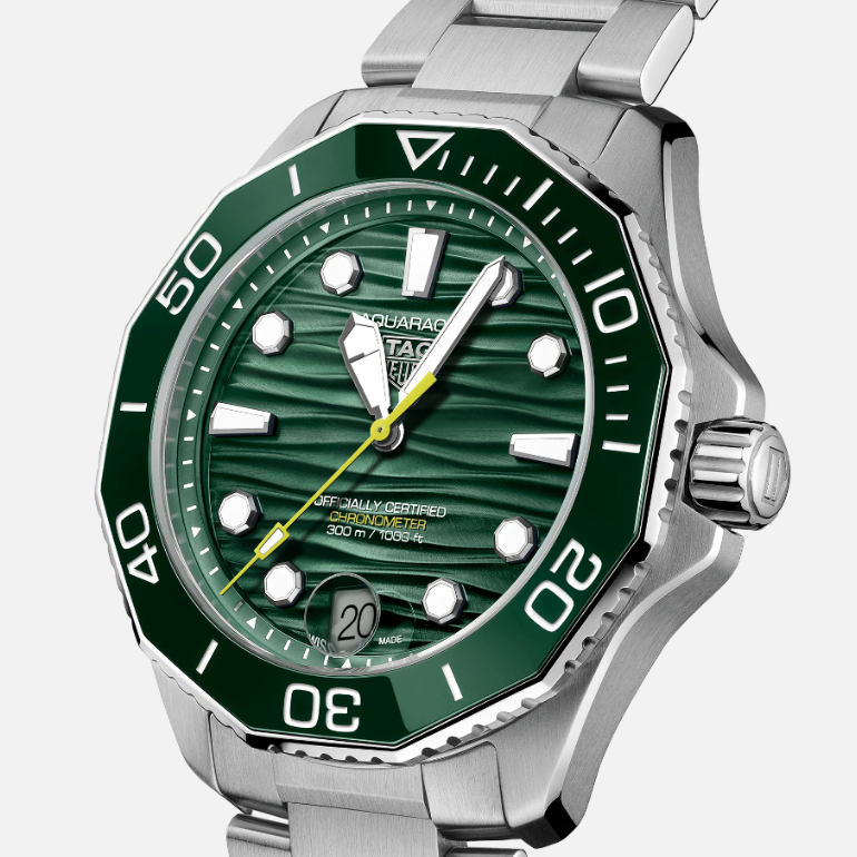 Ultra leggibile grazie alle lancette e agli indici riempiti di Super-LumiNova®, è caratterizzato da un quadrante con motivo a onde di un intenso colore verde e da una lancetta dei secondi dal vivace colore verde lime che richiamano le misteriose profondità oceaniche.