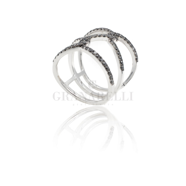Anello con doppio incrocio sfalsato con diamanti bianchi.