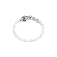 Protagonista di questo bracciale è la chiusura in argento brunito con decoro double face in forma di margherita, da sempre motivo evergreen di Giovanni Raspini. Il gioiello nasce dal dialogo fra l'argento e la perla, regina della gioielleria. Le perle naturali di acqua dolce sono annodate in filo di cotone come tradizione. Il bracciale è provvisto di maglie di regolazione in argento. Fatto completamente a mano in azienda.