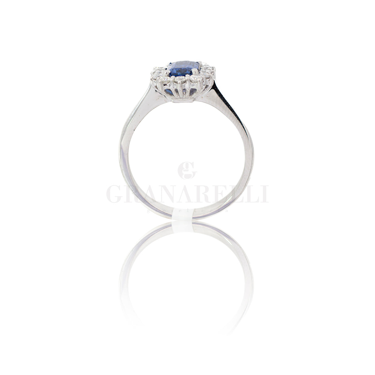 Anello in Oro Bianco con Zaffiro 0.92kt e Diamanti