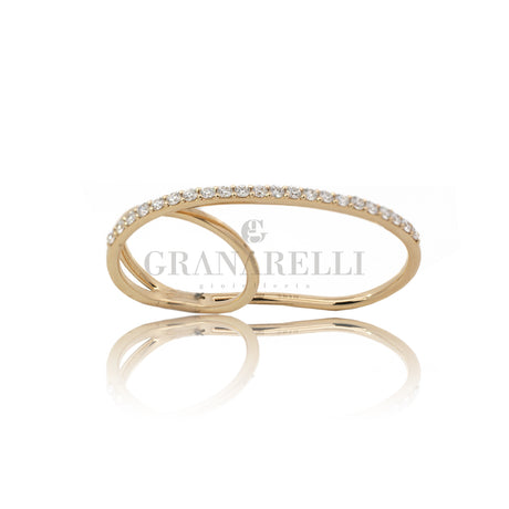 Anello Fedina 2 file Diamanti in Oro Giallo