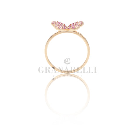 Anello Fedina con 4 Zaffiri Rosa e Diamanti in Oro Rosa