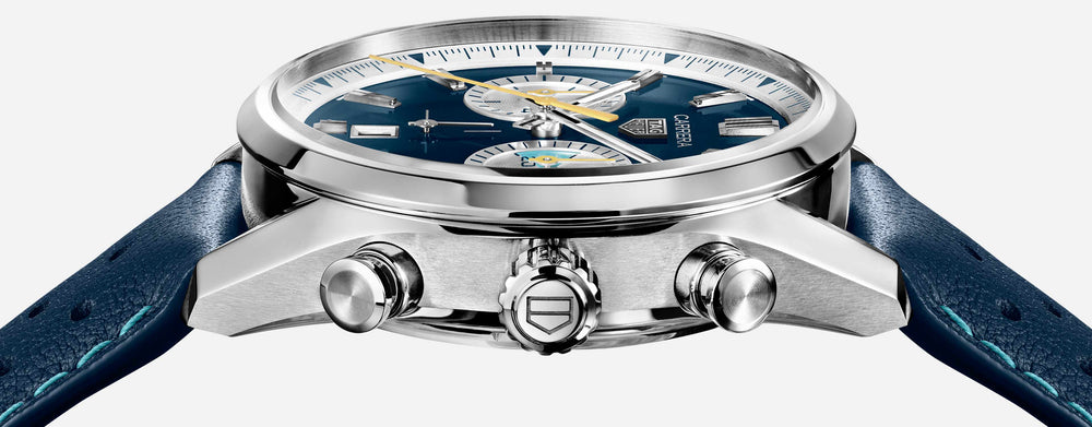 Abbraccia lo spirito dell'avventura con il TAG Heuer Carrera Limited Edition. Progettato per chi vive con audacia e determinazione, questo elegante orologio è pensato per chi insegue la libertà sulle strade soleggiate al tramonto e per gli esploratori degli oceani. Il suo quadrante blu intenso, impreziosito da accenti turchesi sul sottoquadrante e da vivaci tocchi di giallo, irradia un'energia dinamica: un perfetto equilibrio tra tradizione e modernità, ispirato a un leggendario modello Heuer degli anni '50 e '60.