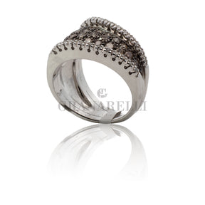 Anello fascia asimmetrica in oro bianco 18 kt con Diamanti bianchi e brown taglio Brillanti.