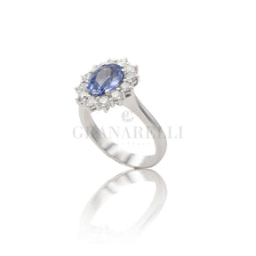 Anello in Oro Bianco con Zaffiro 1.89kt e Diamanti