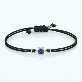 Bracciale cordino nero con zaffiro blu. Per non smettere mai di brillare. Dalle linee essenziali. Uomo o donna che sia, questo bracciale è pressoché indistruttibile.
