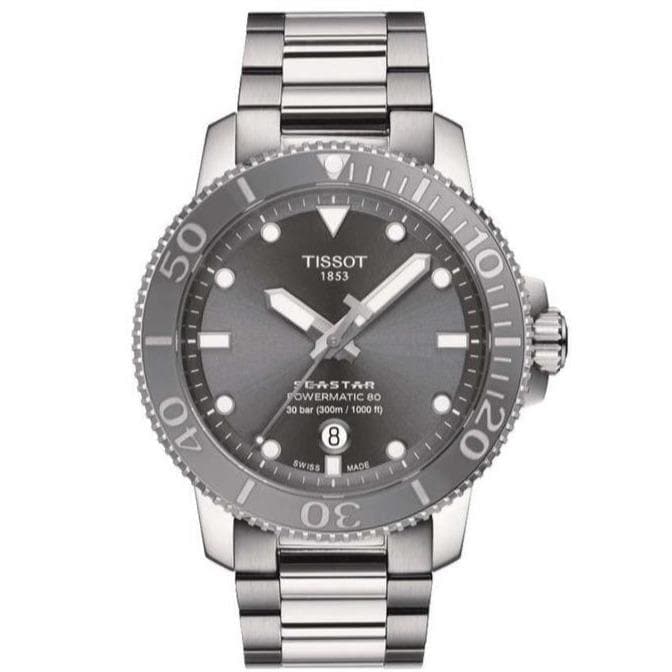 L'orologio Tissot Seastar 1000 Automatic è la scelta perfetta per i sub. Colpisce per le sue elevate prestazioni fino a una pressione di 30 bar (300 m / 1000 ft), lancette e indici luminescenti e la lunetta per immersione in ceramica nera monogiro. Con questo orologio, puoi avventurarti coraggiosamente nel profondo, non ti deluderà.