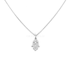 Collana Mano Di Fatima in Oro Bianco e Diamanti