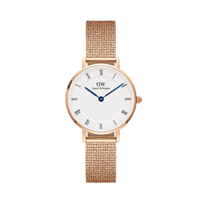 Questa versione del nostro orologio Petite è impreziosita da dettagli di design in stile vintage, come il quadrante con numeri romani e le lancette in acciaio blu, per esprimere il perfetto equilibrio tra un gusto classico e un look di tendenza. Vanta un cinturino in maglia milanese intercambiabile color oro rosato.