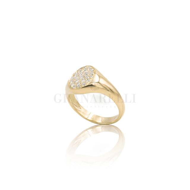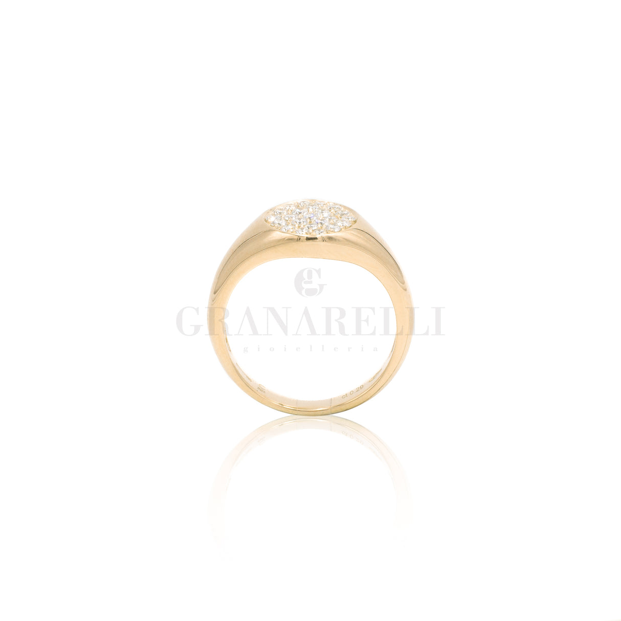 Anello chevalier in Oro giallo pavé di Diamanti bianchi taglio Brillante.