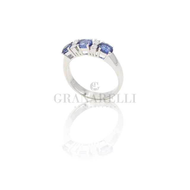 Fedina in oro bianco 18 kt con Zaffiri taglio ovale e diamanti bianchi.
