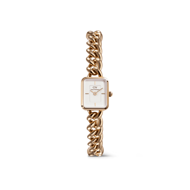 Cosa può nascere dall’unione tra un elegante gioiello e la maestria artigiana dell’alta orologeria? L’orologio catenina Jolie: un intramontabile mix tra la cassa del modello Quadro e il braccialetto Chain. La cassa dalle dimensioni minute si integra alla perfezione con la maglia spessa del braccialetto, creando un esemplare funzionale ma carico di espressività. Gli anelli regolabili della catena garantiscono una vestibilità perfetta per ogni misura di polso. Realizzata in un blocco singolo, la catena vanta una chiusura a farfalla e maglie rimovibili per una regolazione a misura di polso.