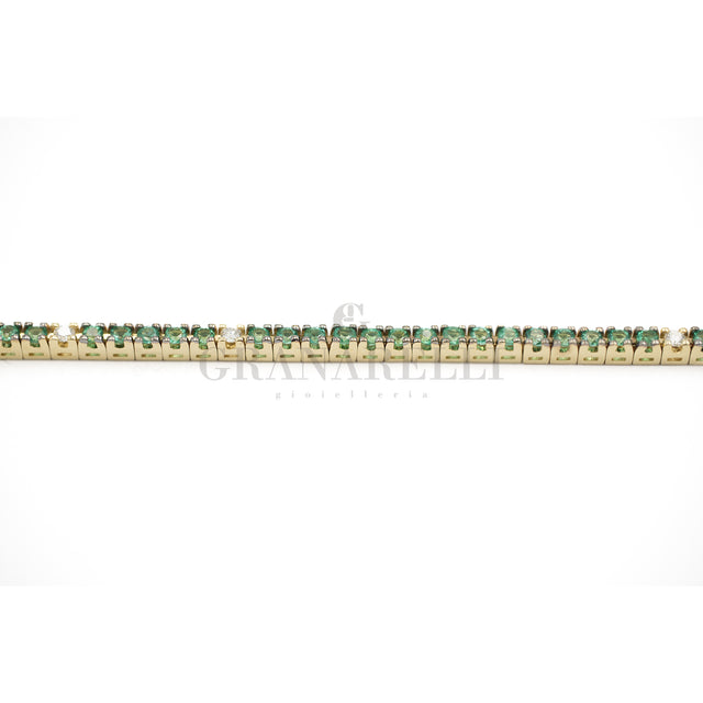 Bracciale Tennis Oro Giallo con Smeraldi e Diamanti Bianchi