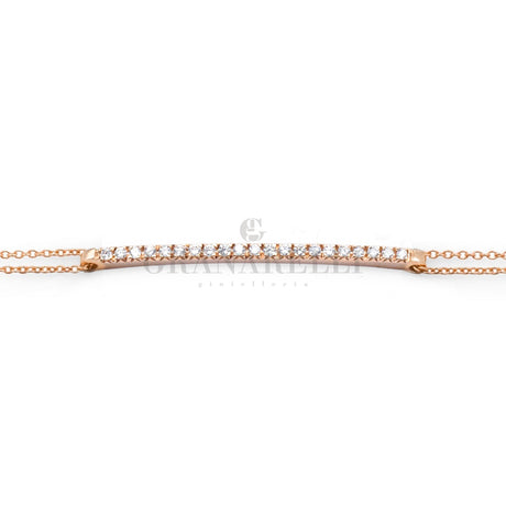Bracciale barretta Media diamanti Bianchi Oro Rosa con catena