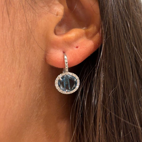 Orecchini Colpo di Fulmine Oro Bianco, Topazio Azzurro e Diamanti