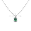 Collana in Oro Bianco 18kt con Smeraldo taglio Goccia pendente con contorno di Diamanti Bianchi.