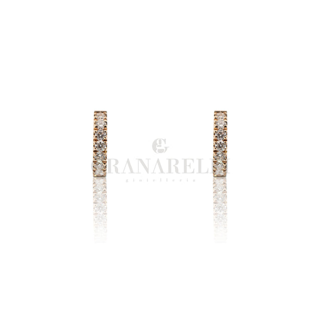 Orecchini cerchi mini in oro rosa 18 kt e diamanti bianchi.
