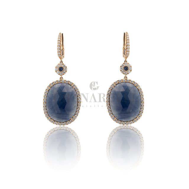 Orecchini boccola zaffiro blu in oro rosa 18 kt e diamanti bianchi.