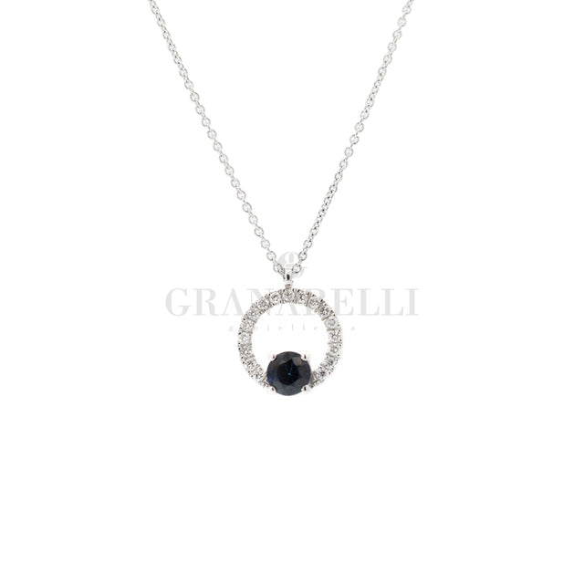 Collana Cerchio in Oro Bianco e Diamanti e zaffiro blu
