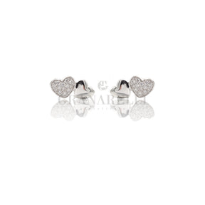 Orecchini 2 Cuori Lucido e Pavè Oro Bianco