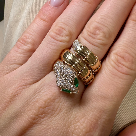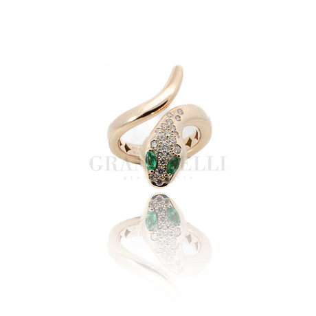 Anello Serpente Oro Rosa e Smeraldi e Diamanti