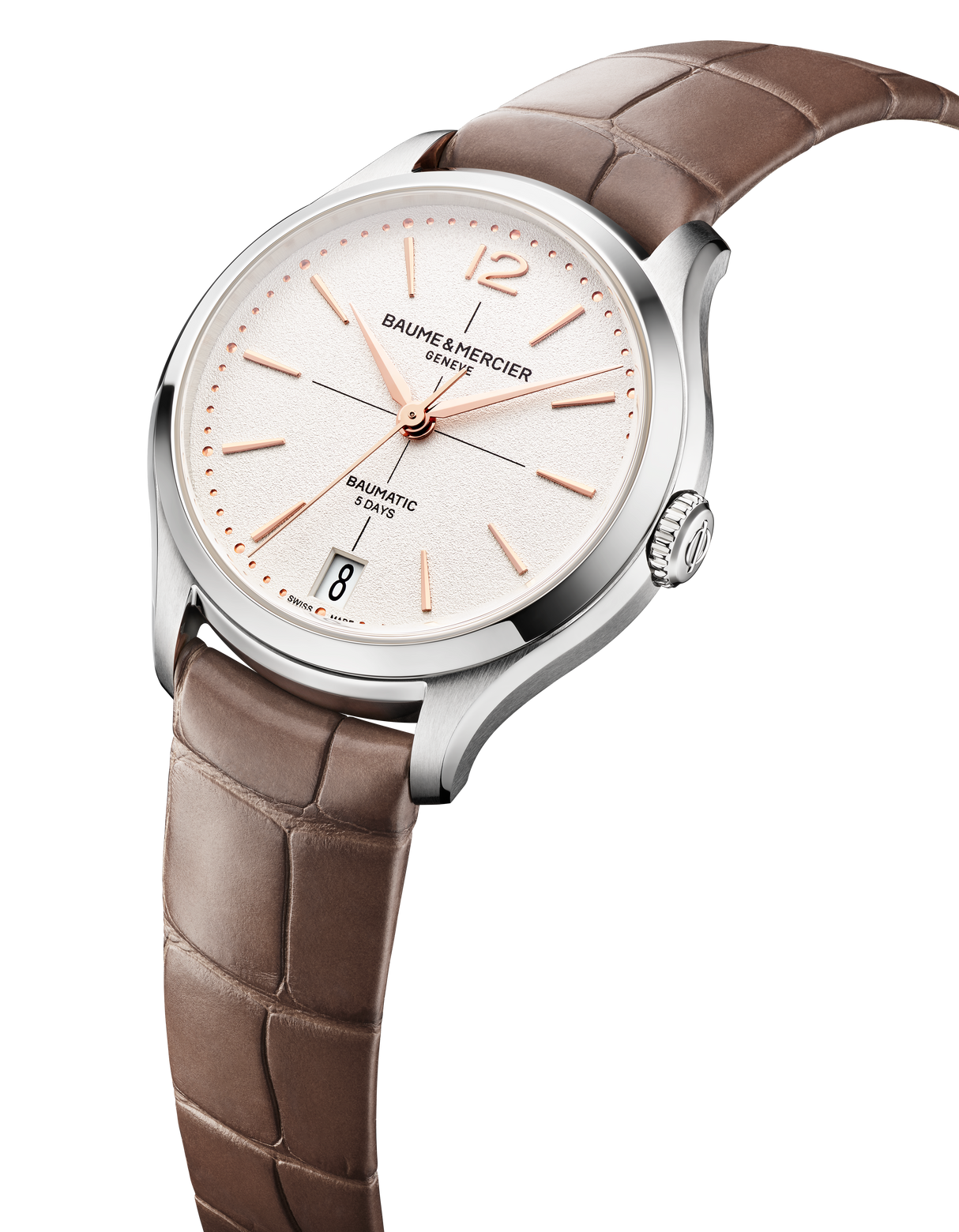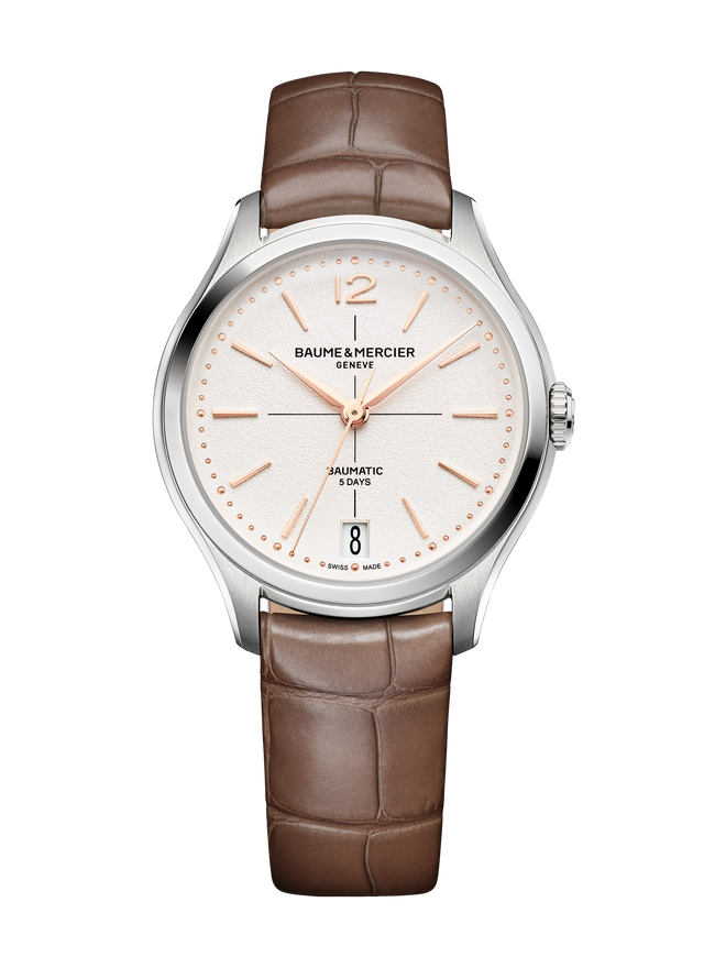 Baume & Mercier risponde alle aspettative di una donna moderna, forte e indipendente, che desidera indossare al polso un segnatempo raffinato e ad alte prestazioni: una creazione straordinaria per la sua complessità, precisione, affidabilità e lunga durata. La collezione Clifton si fa portavoce di questa istanza proponendo due nuovi modelli che uniscono delicatezza del design ed elevata tecnicità. Introduce inoltre, per la prima volta nella sua storia e in quella della Maison, una cassa da 34 mm di diametro, dotando i due nuovi segnatempo del movimento automatico di Manifattura Baumatic, finora riservato ai modelli maschili.
