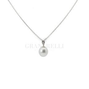 Girocollo con Perla Akoya e diamante in Oro Bianco