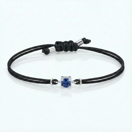 Bracciale punto luce Zaffiro Blu Oro Bianco su cordino