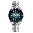 Captain Cook: l’orologio che coniuga eleganza e precisione, per chi pretende il massimo in ogni sfida quotidiana. La cassa da 39 mm in acciaio lucido si fonde armoniosamente con la lunetta girevole coordinata, impreziosita da un inserto in ceramica nera lucida con indici metallizzati argento. Il movimento automatico R763 assicura affidabilità meccanica, grazie anche alla spirale antimagnetica Nivachron™. Il bracciale “chicco di riso” in acciaio lucido e satinato, con fibbia a tripla piega, completa il design.
